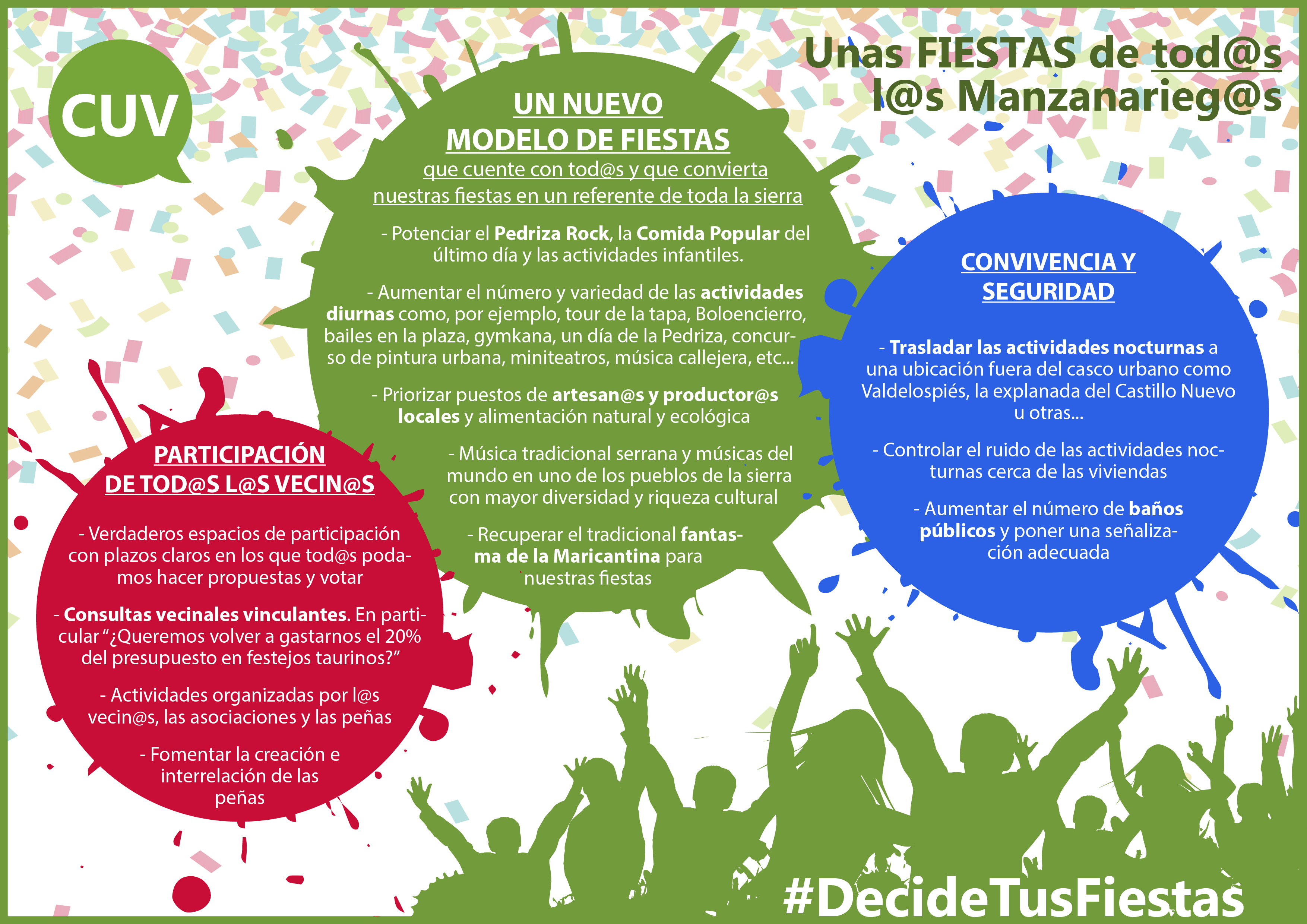 En la CUV, hemos creado un grupo ciudadano para diseñar un nuevo modelos de fiestas, y éstas son algunas de nuestras propuestas: