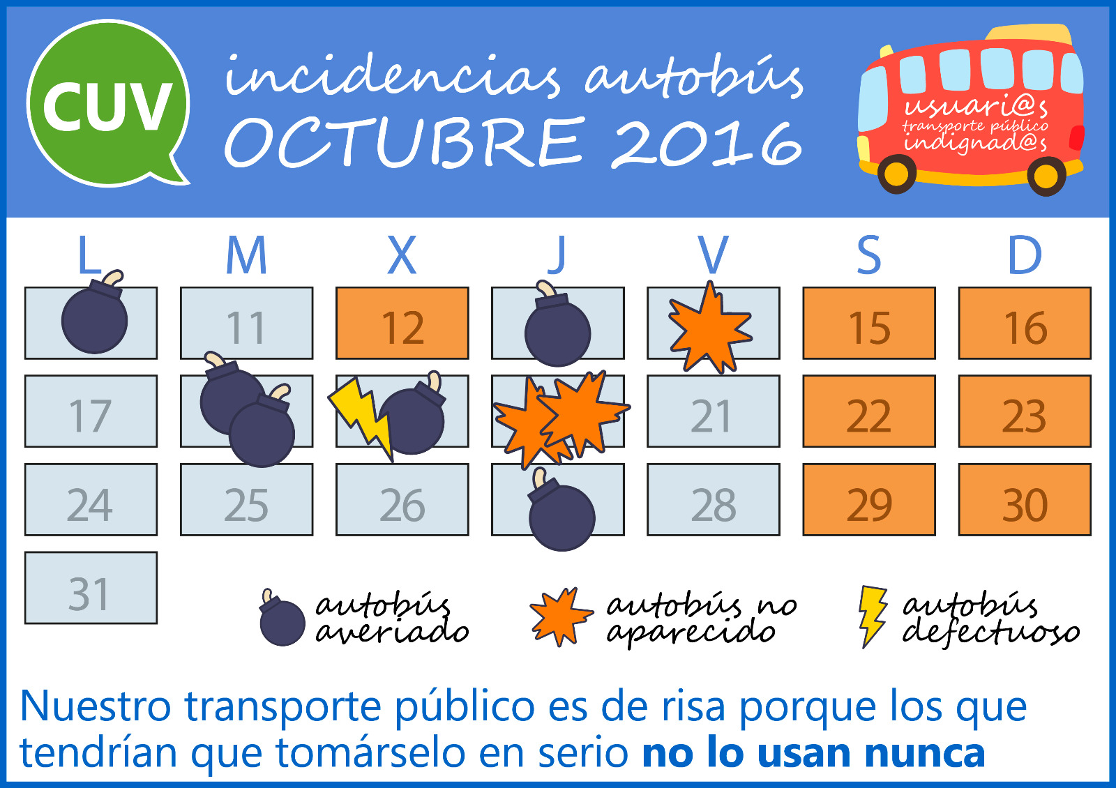 ¿En noviembre tendremos menos o tendremos más…? Que empiecen las apuestas! ¡Ya está bien de que nos sigan tomando el pelo! Nuestro transporte público es de risa porque los que tendrían que tomárselo en serio no lo usan nunca #NosMovemosEnBus