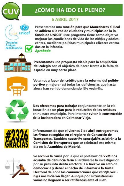 Hola a tod@s! Porque nos importa mucho que estés informado de todo lo que pasa en nuestro pueblo, hemos preparado esta infografía con los puntos clave del último pleno municipal del 6 de abril.