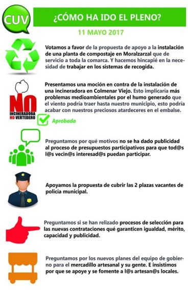 Hola a tod@s! Porque nos importa mucho que estés informado de todo lo que pasa en nuestro pueblo, hemos preparado esta infografía con los puntos clave del último pleno municipal del 11 de mayo.