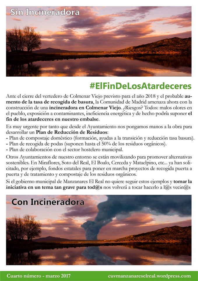 También compartimos de nuevo el artículo del número 4 de La Circular donde abordamos este tema en relación con el proyecto de construcción de una incineradora en Colmenar Viejo que nos afectaría tod@s los manzanarieg@s.