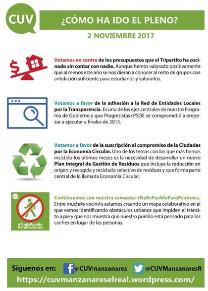 ¿Quieres saber que pasó en el último pleno municipal del 2 de Noviembre de 2017? En esta infografía te lo contamos. Y si quieres profundizar, en este enlace puedes ver la grabación completa del pleno : https://youtu.be/CavFfkJFZ4Y