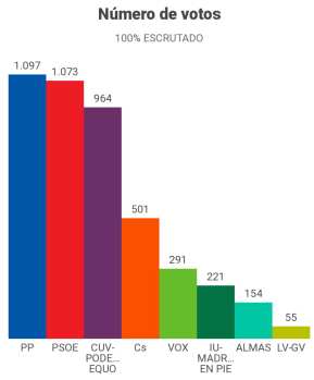 Los resultados de las elecciones municipales del pasado domingo 26 de mayo dieron la victoria al Partido Popular con 1097 votos y 4 concejales pero arrojaron una mayoría progresista en nuestro pueblo. El PSOE llega segundo con 1074 votos y 4 concejales, y la CUV-Podemos-Equo tercera con 964 votos y 3 concejales. Ciudadanos y Vox consiguen también 1 concejal cada uno.