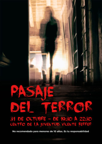 – De 19:30 a 22.30 horas. PASAJE DEL TERROR. (FIESTA DE HALLOWEEN). Centro de la Juventud ‘Vicente Ferrer’. No recomendado menores de 10 años.